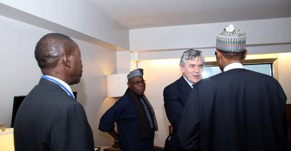 Buhari, Gordon Brown, Obasanjo at a bilateral meeting at the UNGA